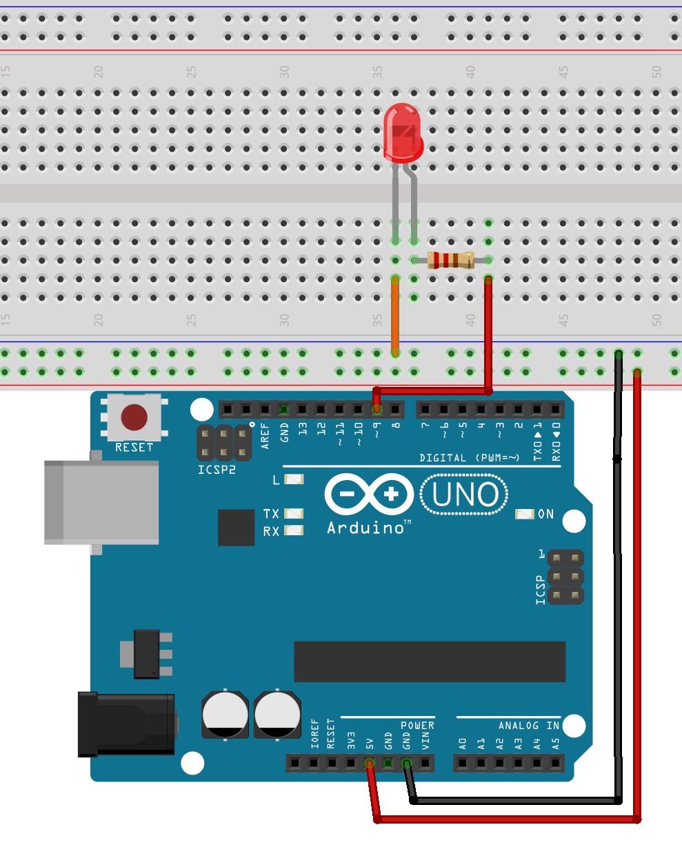 a) Bouw de opstelling die hiernaast staat. Gebruik bij de output een pin met PWM.